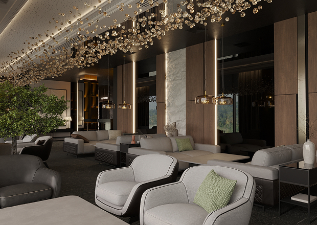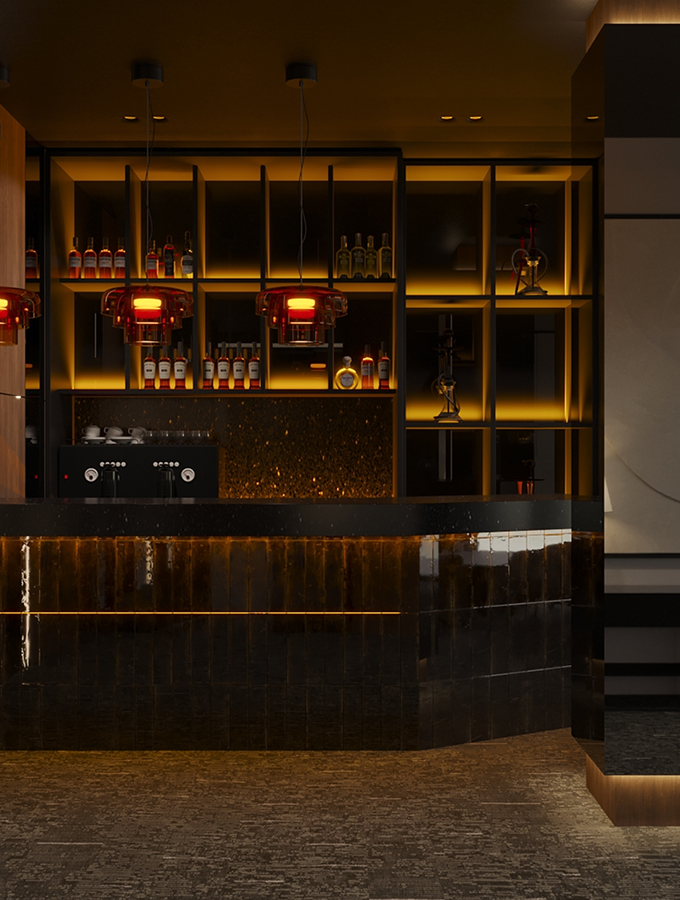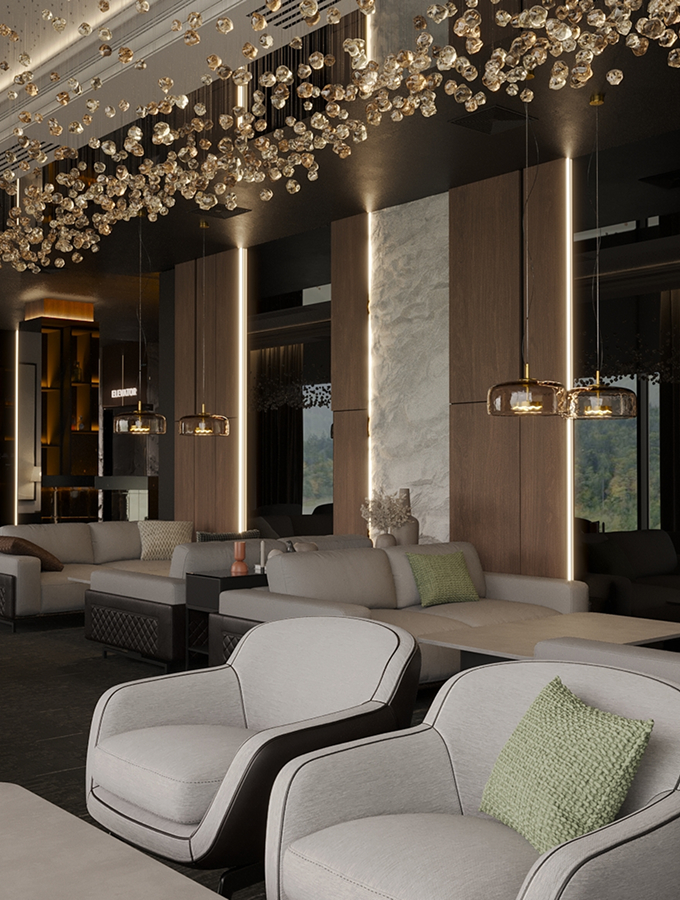 Простір для неспішних розмов і відпочинку після продуктивного дня. Тут панує затишна атмосфера з приглушеним світлом, стильним авторським дизайном і відчуттям приватності.