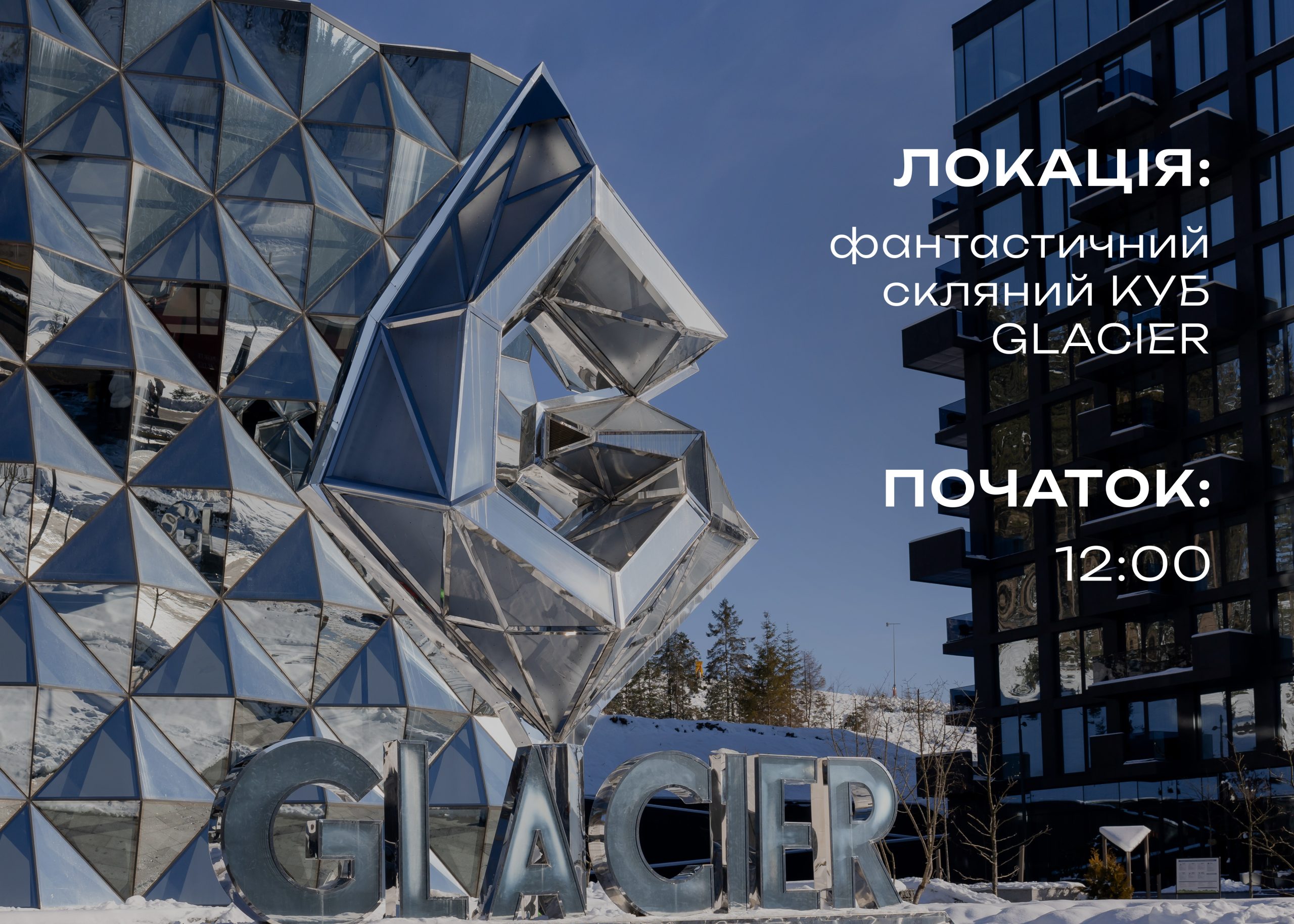 Розпочинаємо о 12:00 біля скляного куба Glacier!